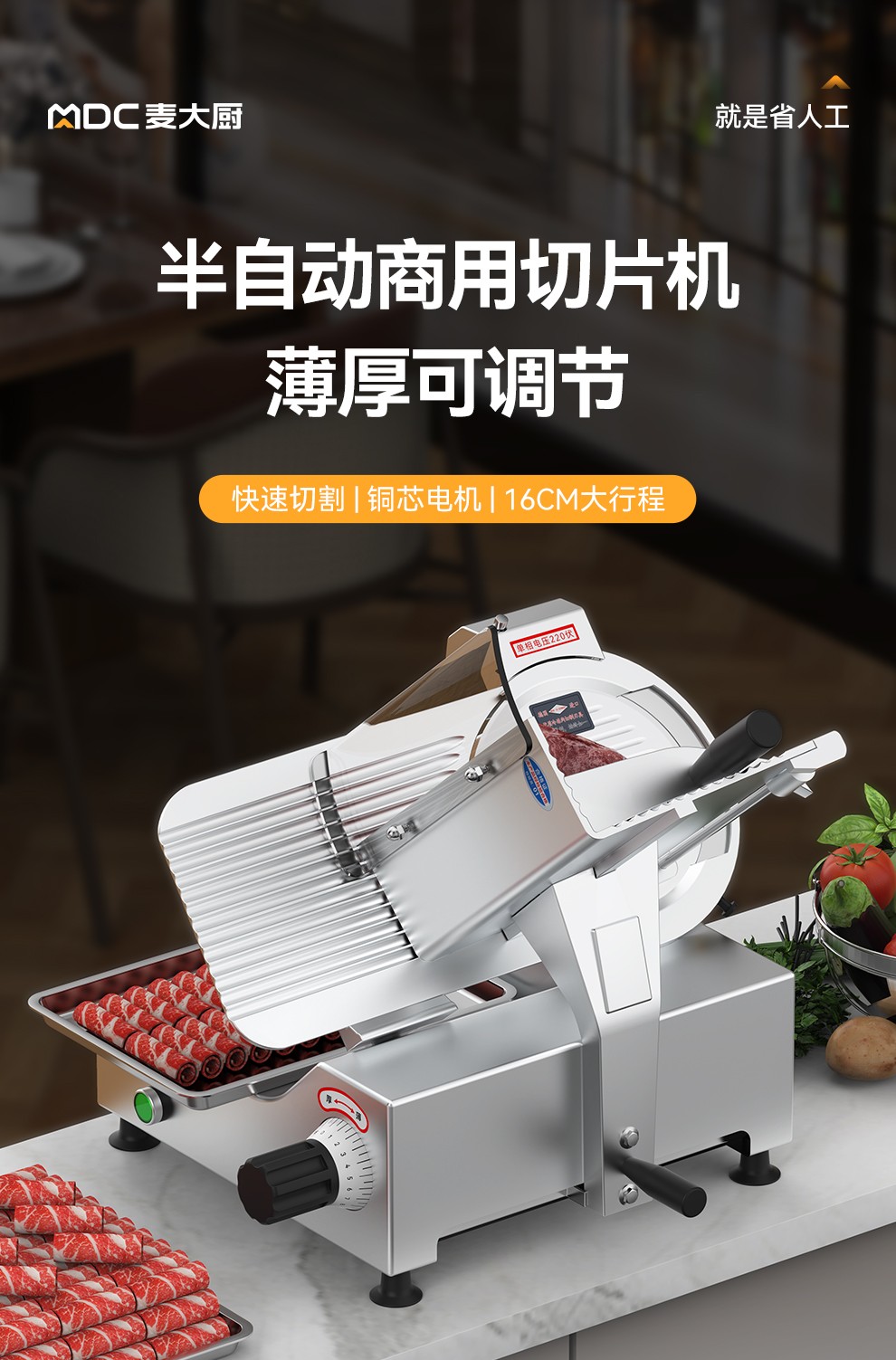 首頁(yè) > 商廚產(chǎn)品 > 食品機(jī) > 切片機(jī) >麥大廚商用10寸臺(tái)式半自動(dòng)切片機(jī)切牛肉羊肉片專(zhuān)用